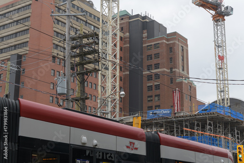 Fototapeta premium streetcar on Bathurst and construction work at Toronto Western Hospital (UHN) viewed from Nassau Street