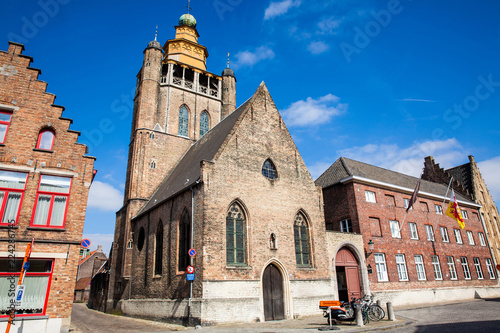 Fototapeta premium Streets and the Jerusalem church at the historical town of Bruges