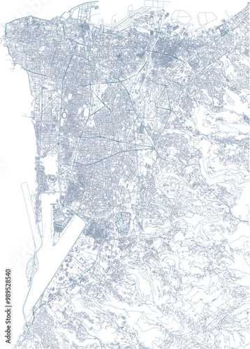 © Naeblys, Obraz premium Streets of Beirut, city map, Lebanon. Buildings and roads, vector