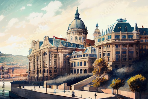 Obraz premium Streets of Budapest. Beautiful illustration generated by Ai
