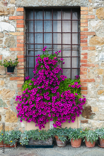 Fototapeta premium Streets of San Quirico D'Orcia,Tuscany. Flower detail.