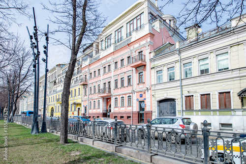 Fototapeta premium Streets of the center of Moscow on a spring day with clouds.