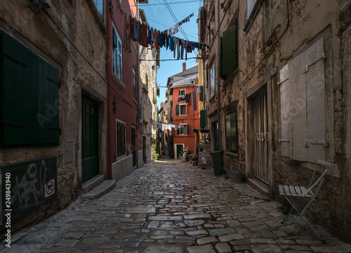 Fototapeta premium Streets of the old town of Rovinj. Old Croatia.