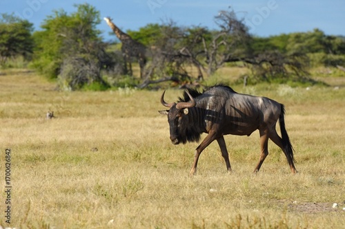 Naklejka premium Streifengnu (connochaetes taurinus) im Etoscha Nationalpark in Namibia.