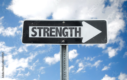 © gustavofrazao, Fototapeta premium Strength direction sign with sky background