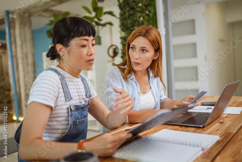 Fototapeta premium stressed female colleagues while collaboration on a project at home