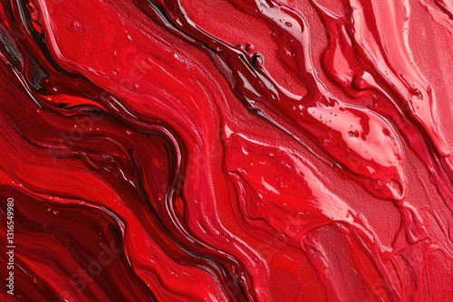 Obraz premium Stretched red acrylic painting on canvas with dripping effect.