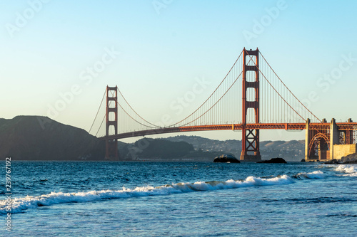 © Madhusudhanan, Fototapeta premium Stretching a mile below the rugged cliffs on the Presidio’s western shoreline, Baker Beach’s spectacular outside-the-Gate views of the Bridge and the Marin Headlands are unsurpassed.