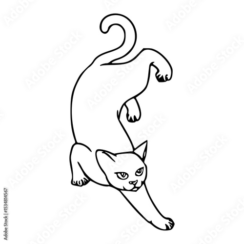 © Zen20, Naklejka premium stretching cat yoga pose line art