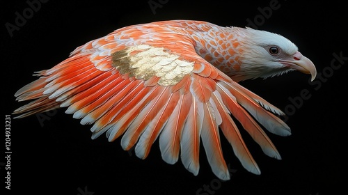 © Keattipoom, Obraz premium Striking Bird in Flight with Bright Plumage and Elegant Wings Against Dark Background