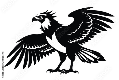 © Shipon, Fototapeta premium Striking Black And White Eagle Spreading Wings on White Background