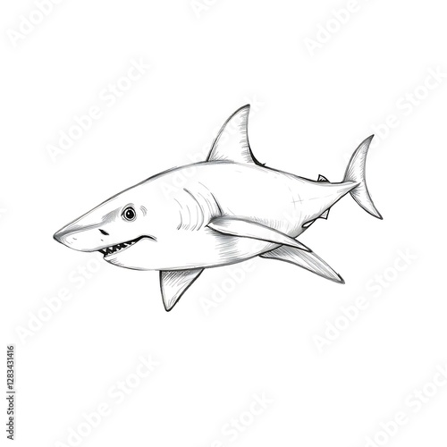 Fototapeta premium Striking Black and White Hand-Drawn Sketch of a Powerful Shark in Motion –...