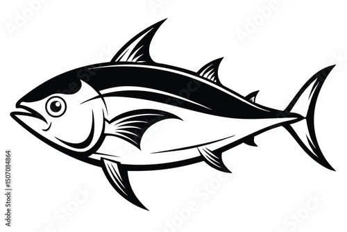 © kanchanrani, Obraz premium Striking Black and White Illustration Depicting a Tuna with Sharp Fins and Tail