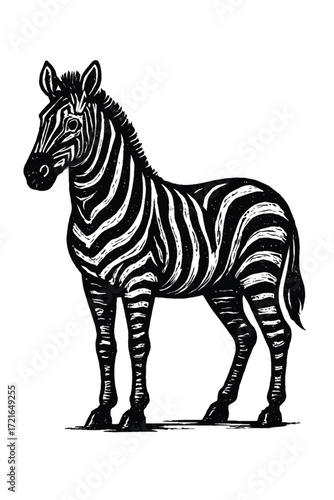 Obraz premium Striking black and white illustration of a zebra standing gracefully on a...