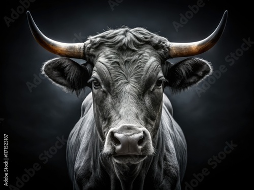 Naklejka premium Striking black and white minimalist bull head art print; powerful, modern,...