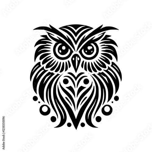 Fototapeta premium Striking Black and White Owl: Geometric Tribal Bird Art Design