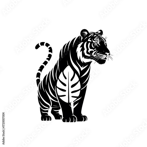 Fototapeta premium Striking Black and White Tiger Illustration Majestic Feline with Bold Stripes...