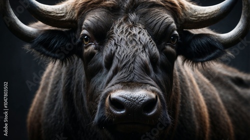 Naklejka premium striking black buffalo in a dark room professional photo
