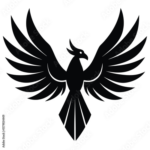 Obraz premium Striking Black Phoenix Illustration, Wings Spread Wide, Elegant Bird Design...