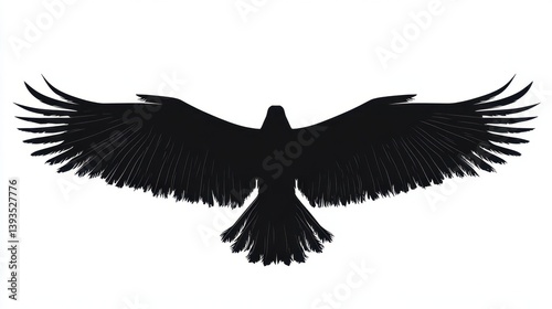 Naklejka premium Striking black silhouette of a bird with wings fully spread, evoking power...