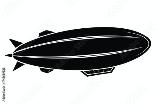 © kanchanrani, Fototapeta premium Striking Black Silhouette of a Vintage Dirigible Airship with White Stripes and Cabin