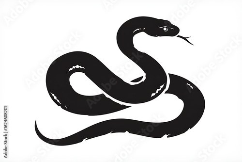 Naklejka premium Striking Black Snake Silhouette in Coiled S-Shape with Raised Head and Tongue...