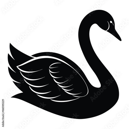 © NasimaH, Obraz premium Striking Black Swan Silhouette on White Background, Elegant Bird with Graceful Curves