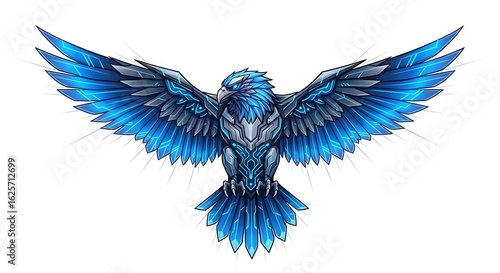 © AI Stock, Fototapeta premium Striking Blue Eagle with Cybernetic Design Isolated on White Background