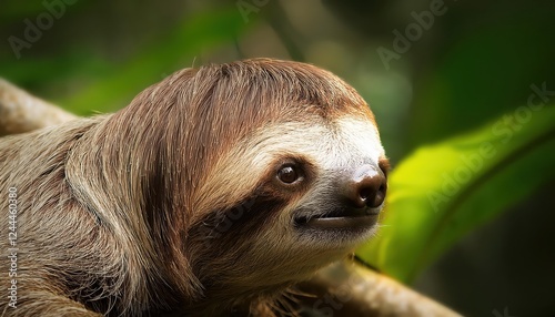 © netsay, Naklejka premium Striking BrownThroated Sloth Bradypus variegatus Perched Amidst Tropical Vegetation, Showcasing the Beauty and Tranquility of Neotropics