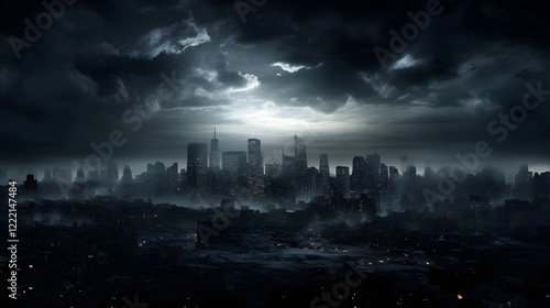 Fototapeta premium Striking Cityscape Silhouette of a Metropolis Skyline Under a Dramatic Sky...