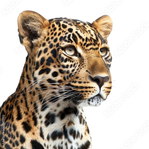 © Abdul, Obraz premium Striking close-up of a leopard showcasing its distinctive coat and fierce expression