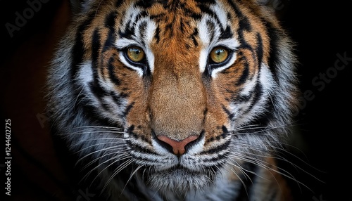 Fototapeta premium Striking CloseUp of a Tigers Fierce Countenance, Showcasing Intense Eyes and...
