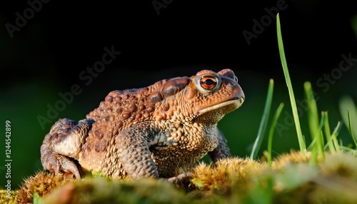 Fototapeta premium Striking Closeup of European Toad Bufo bufo in Detail, Showcasing Rich...