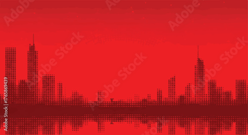 Obraz premium Striking Crimson City Skyline with Reflective Urban Silhouette