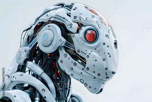 Fototapeta premium Striking Cybernetic Creature with Transparent Robotic Face and Neck in...