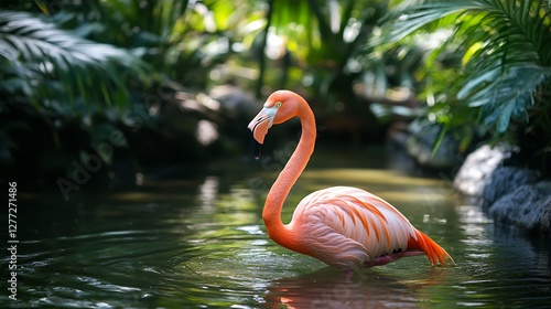 Fototapeta premium Striking flamingo with scenic background high resolution wallpaper