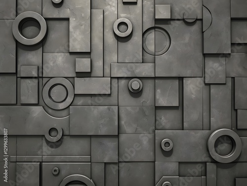 © Chumporn, Obraz premium Striking Geometric Patterns in Monochrome Minimalist Architectural Backdrop