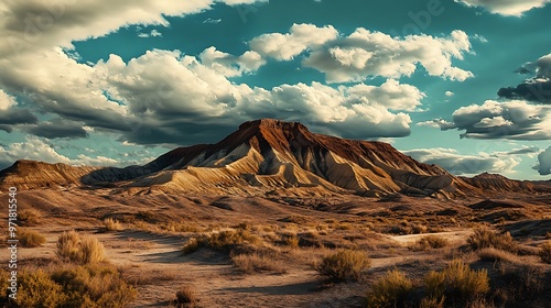 Fototapeta premium Striking Landscape with Colorful Mountain and Dramatic Clouds in the Desert