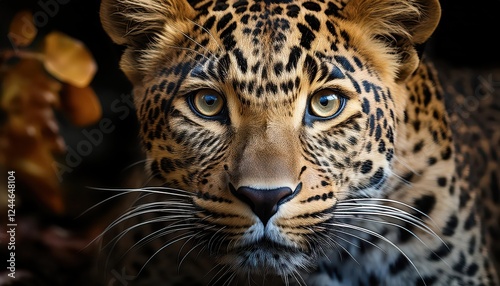 Naklejka premium Striking Leopard Portrait Majestic Big Cat Gazes Intently from the Savannah...