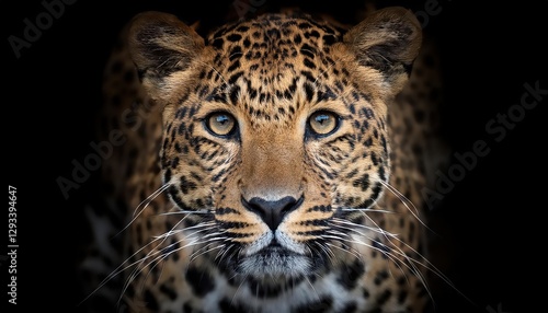 Naklejka premium Striking Leopards Intense Gaze, Majestic Felid Portrayed in Vivid Detail...