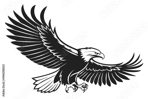 © Shipon, Fototapeta premium Striking Monochrome Eagle Majestic Bird with Detailed Wings in Flight Design