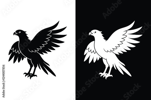 © Ali, Fototapeta premium Striking Osprey Silhouette Icon – Crisp Black & White Vector.
