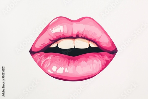 Obraz premium Striking Pink Lipstick Mouth Vinyl Sticker for Cosmetics Packaging