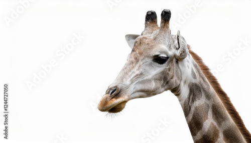 © netsay, Naklejka premium Striking Portrait of a Giraffe in Isolated White Background Captivating Closeup Showcases Majestic Animals Textured Coat and Expressive Eyes, Perfect for Wildlife Artwork or Design Inspiration
