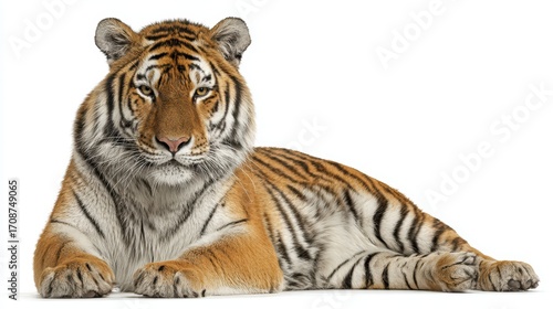 Naklejka premium Striking Portrait of a Relaxed Bengal Tiger, Perfect for WildlifeThemed...