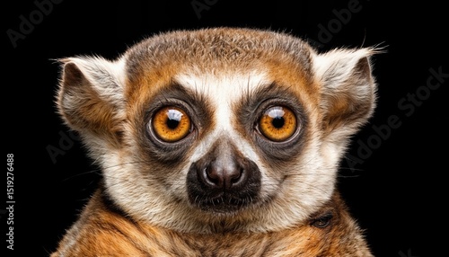 © netsay, Obraz premium Striking Portrait of a Slow Loris in an Isolated Setting, Showcasing the Enchanting Eyes and Distinctive Textures of this Nocturnal Lemur against a Dark Backdrop, Evoking a Mystical Atmosphere.
