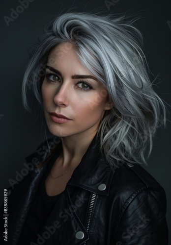 Fototapeta premium Striking portrait of a woman with dramatic silver hair