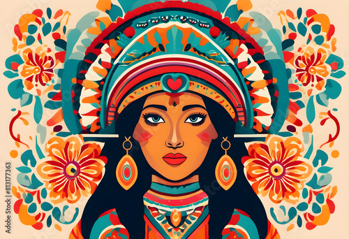 © Priscilla, Fototapeta premium striking portrait of a woman with mexican cultural pride graphic