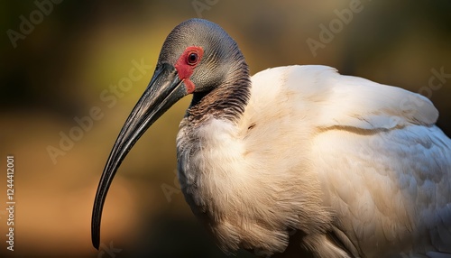 © netsay, Fototapeta premium Striking Portrait of an Australian White Ibis amidst a Tropical Australian Wetland, Captured in Soft Light and Rich Colors, showcasing the Birds Vibrant Plumage and Reflective Eyes.