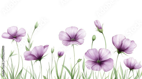 Fototapeta premium Striking purple flowers on a black background, vibrant floral display vivid